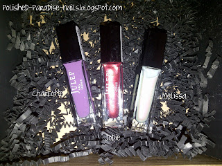 The March "It Girl" box came with three polish colors. Charlotte which is a lavender creme color, Jodie wich is a rose color with a gold shimmer, and Melissa which is an opalescent shimmer. I am so excited to swatch these colors and I will definately have pictures of them up shortly.